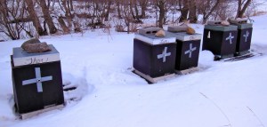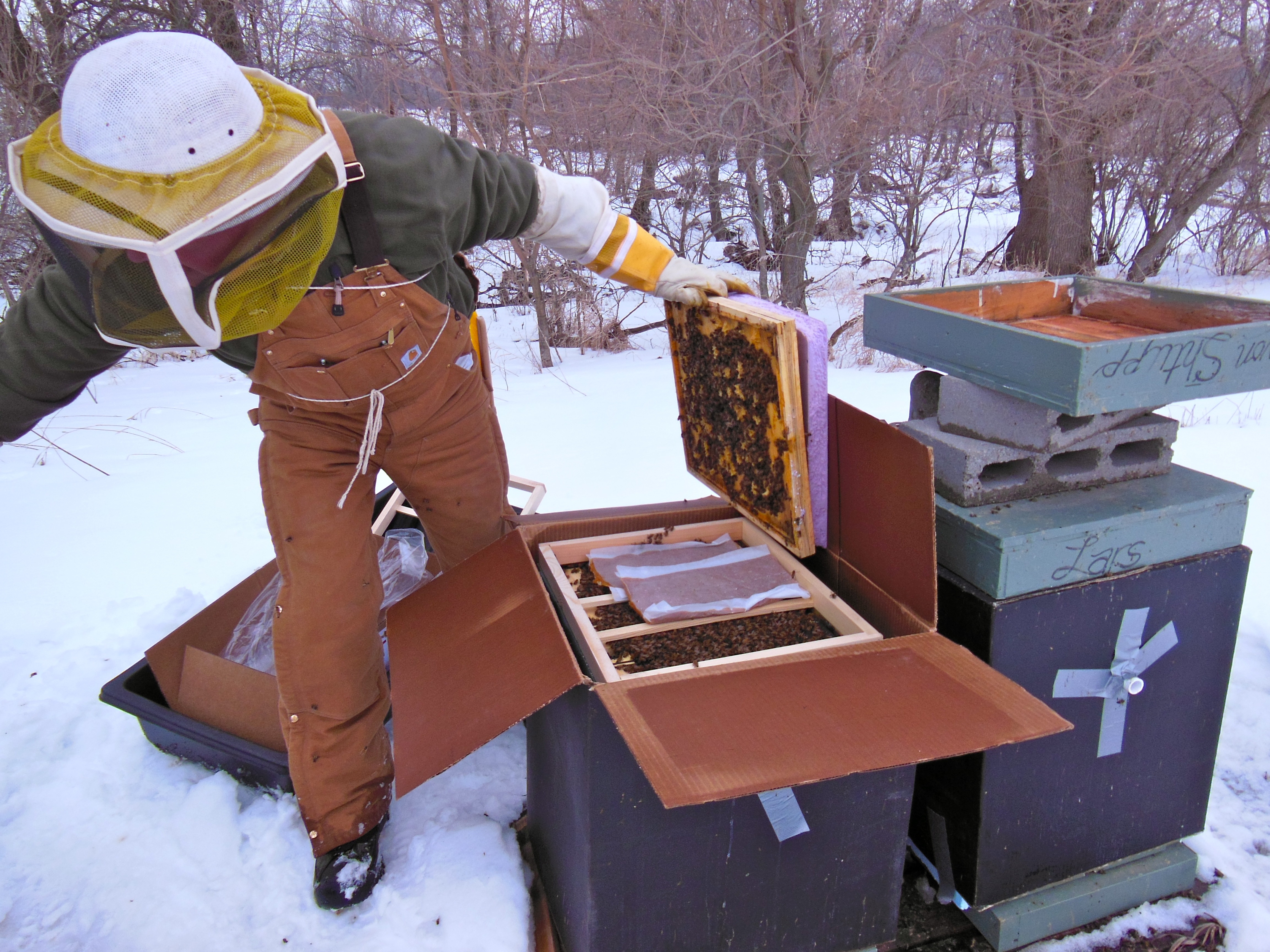 We saw a 65+ degree day today in Iowa! (Of course, it may snow later this week too…) But today is a great day to get out to the bees (in a truck this time, not sledding across a field) and take off the insulating layers we put on last fall to help the bees survive the winter.
