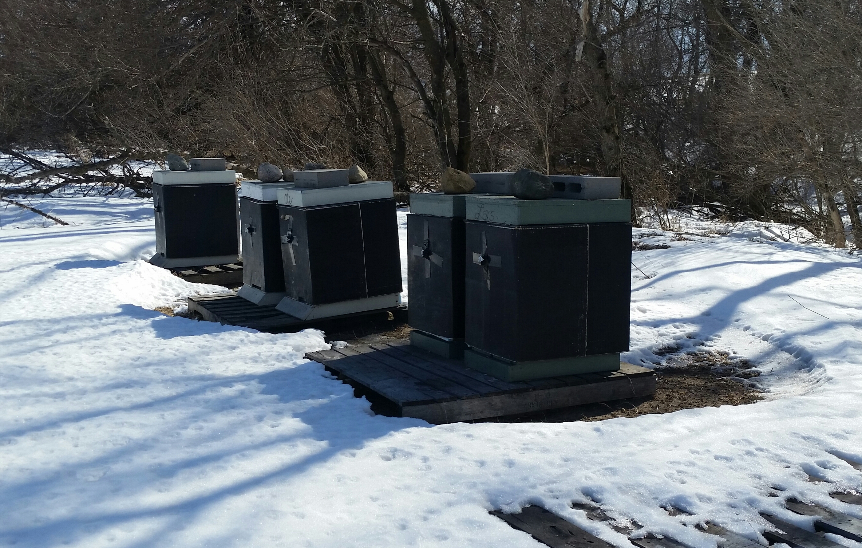 A sight for sore eyes! Hives still in place!Uh yahhh, suit up, even in the winter, because I’m a sting magnet. And true to form, Lena was a royal nag and the net was a good thing.