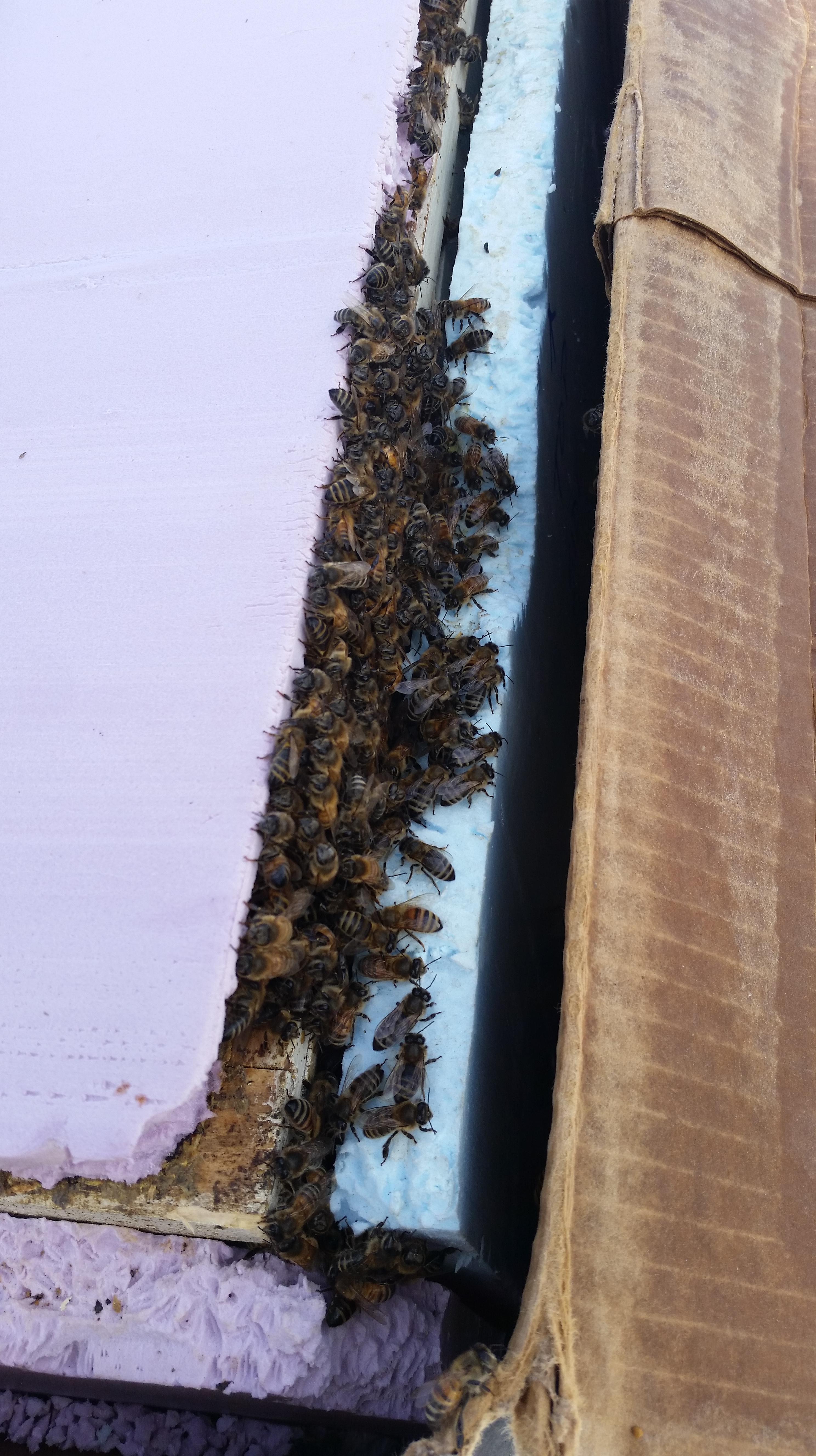Yep, the mice are still enjoying the insulated confines of the winter hive set-up.