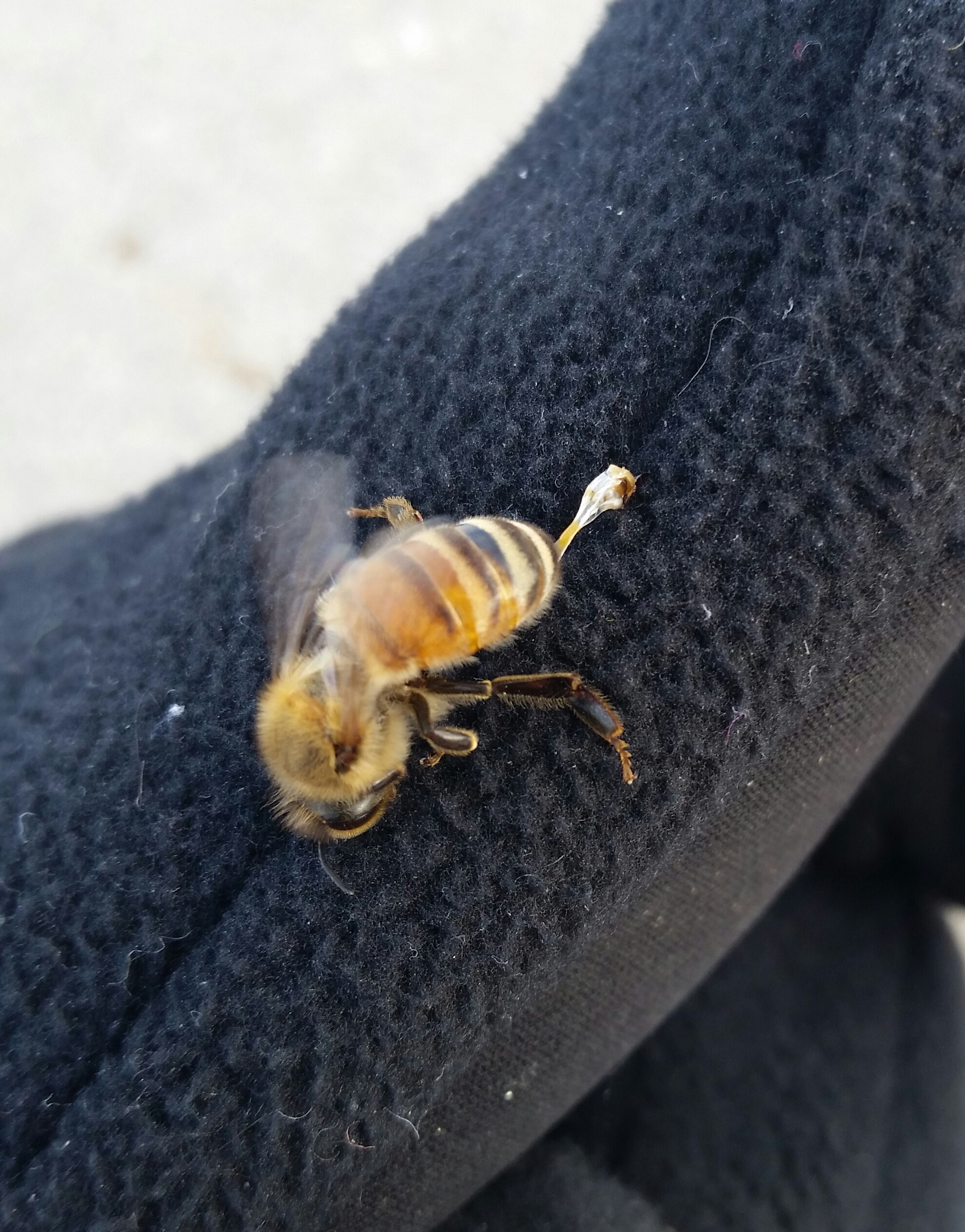 And here is one of the ~20 bees from Lena that decided by gloved hands MUST DIE.