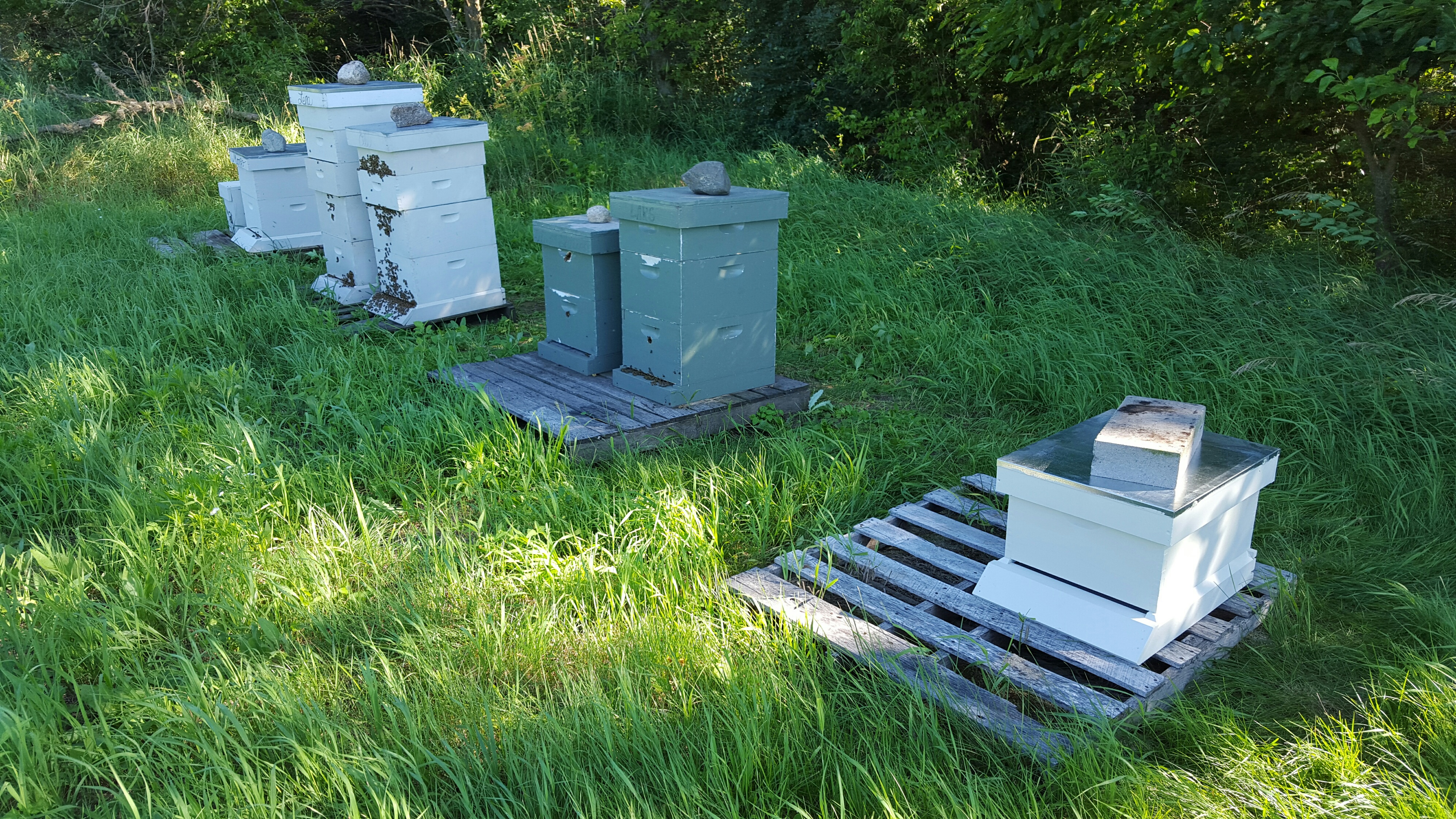 At some point in time I seriously considered just just lying down in the prairie and weeping from all the ridiculousness. But, on the upside, I didn’t get stung (for once) so no shots needed. And Mark managed to wander around the bee yard for half the day with his hood/veil entirely unzipped and he didn’t get stung but we realized the oversight when he suddenly declared there was a bee in in veil. Following us around is like watching a Far Side cartoon come to life.