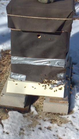 * – Bee fondant. Basically, it’ hard rock candy for bees. We read what seems like a million recipes online, and, our attempt mildly failed. It’s more of a sad taffy than rock candy. *sigh* We happened to be in Sioux City this past weekend and picked up a big box of  winter patties at Dadant & Sons. When the temps get high enough we’ll switch the taffy out for the real-deal winter patty.